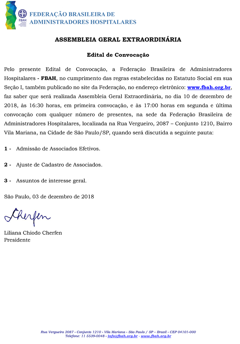 ® 2025 - FBAH - Federação Brasileira de Administradores Hospitalares.