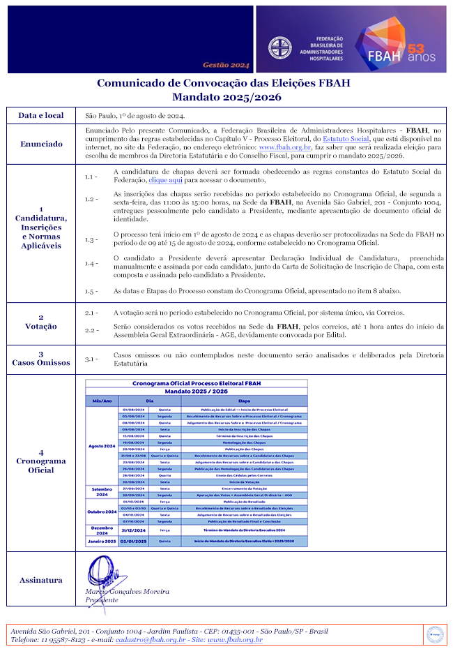 ® 2025 - FBAH - Federação Brasileira de Administradores Hospitalares.